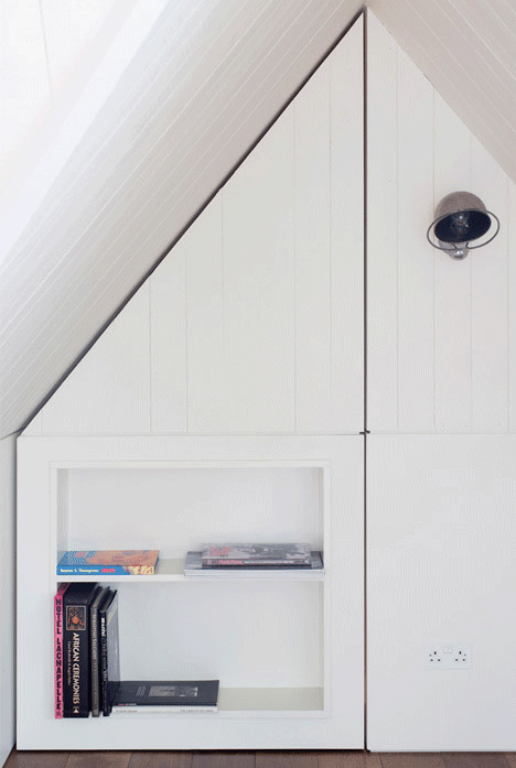I love surprises in interior design. This clever loft conversion by Martin Architects conceals a secret room to enable the space to be truly multifunctional. A modern twist on the moving bookshelf, the third room in the space is concealed behind a moving wall with integrated bookshelf. To enter, the clients push one side of the wall and it slides back on runners which are set into the floor and ceiling.